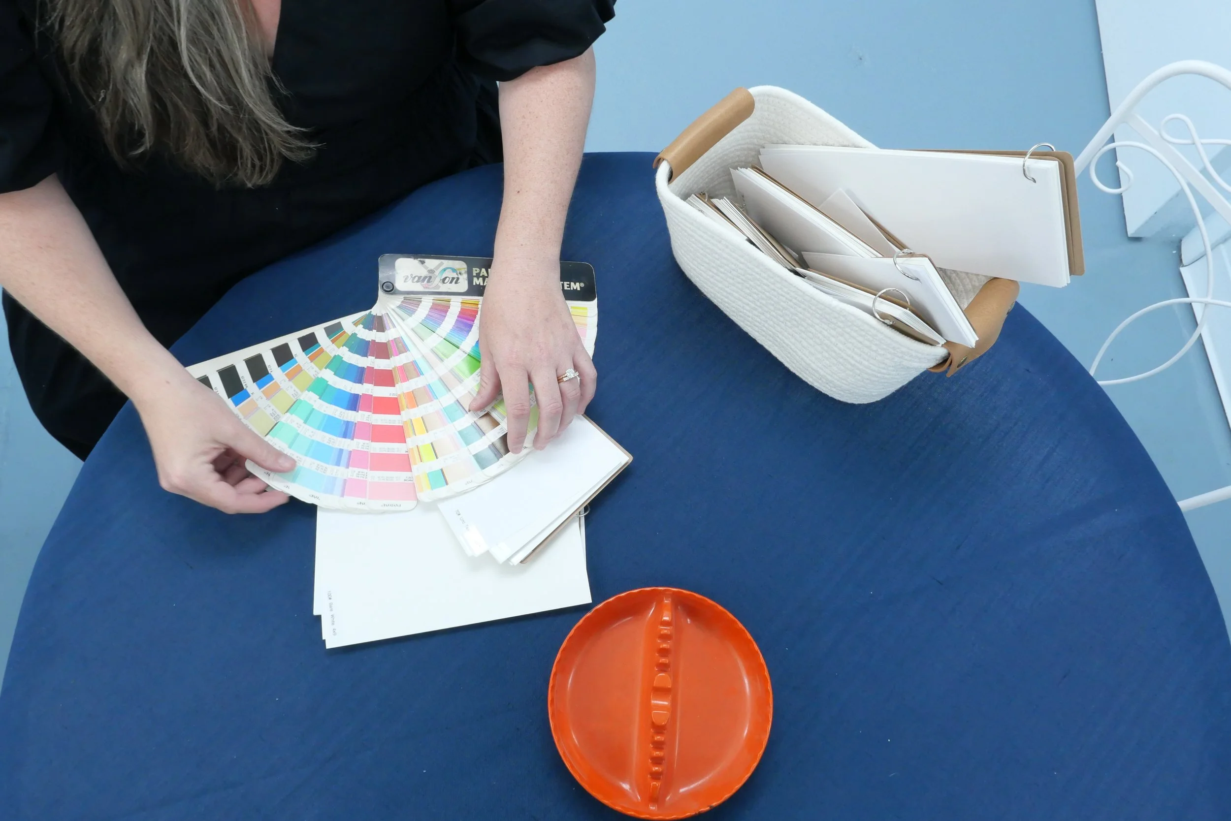 We have swatch books which make for easier selection and comparison of papers that we carry. They show the colors, weights, and textures–allowing you to find the best paper for your needs. Even special order stocks are usually available in no more than 1 to 2 business days.